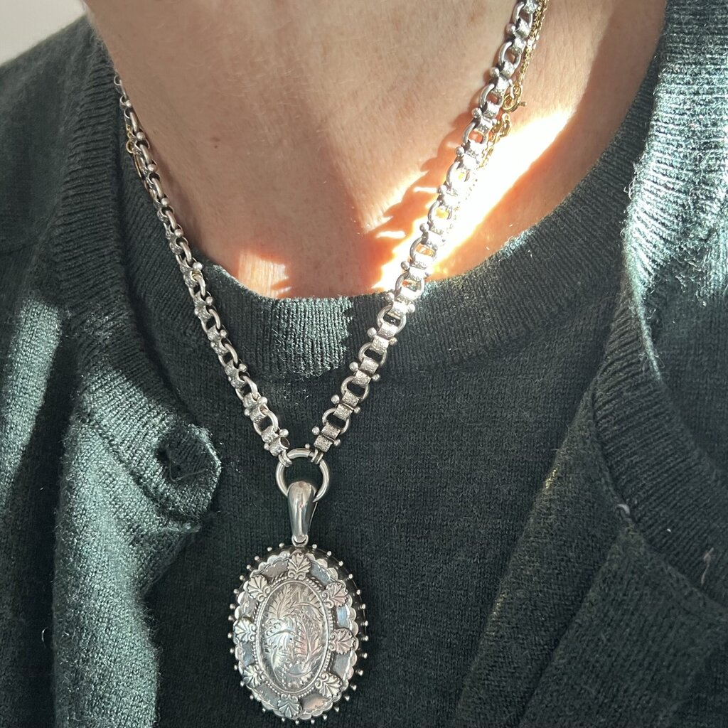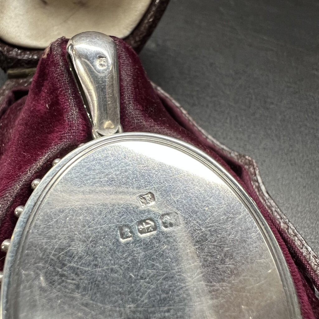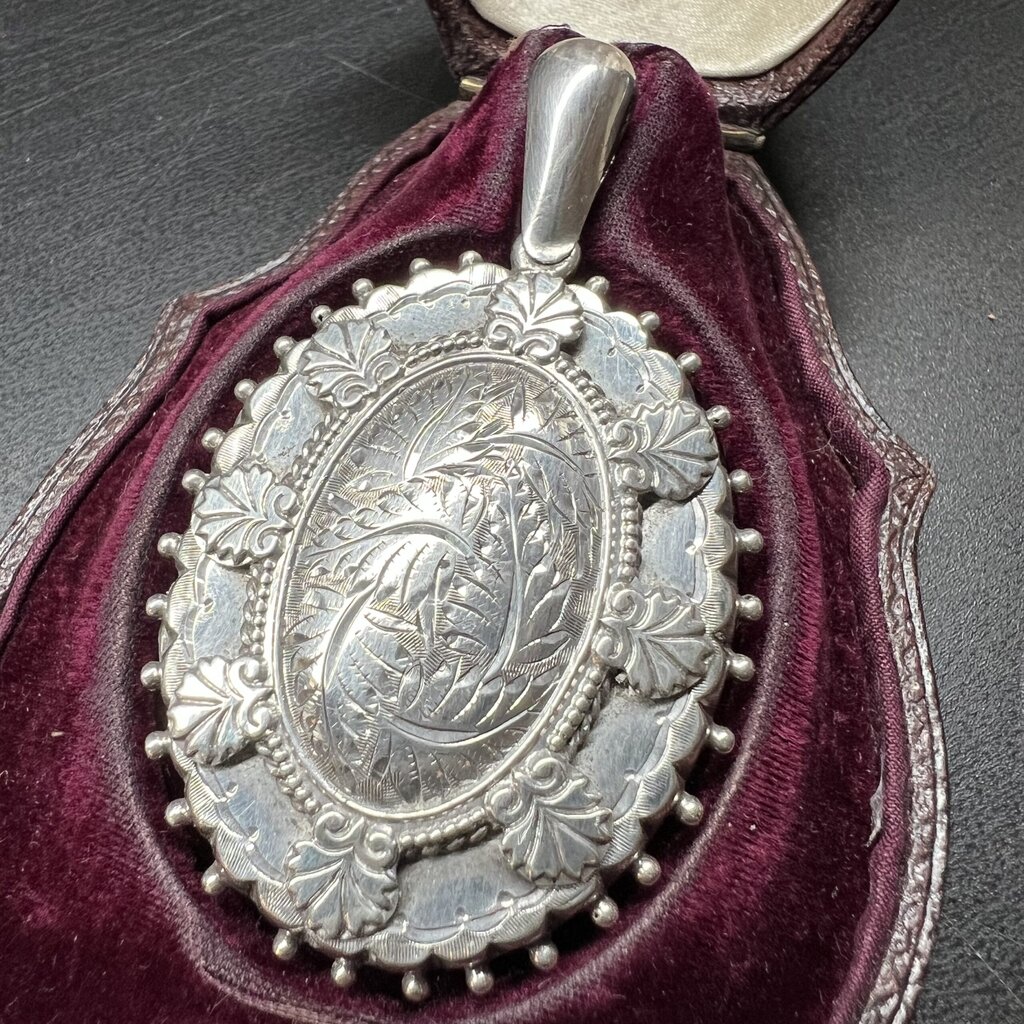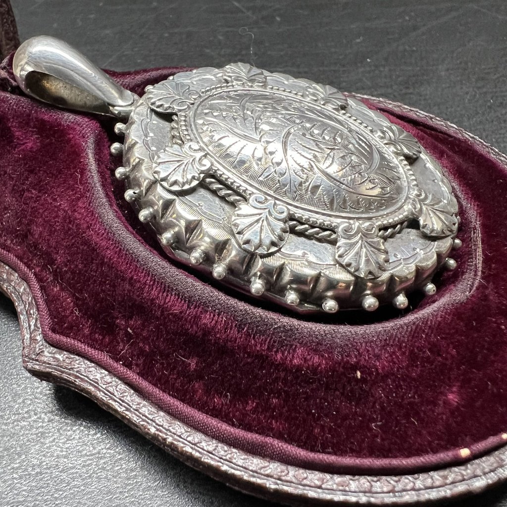 Antique silver engraved photo locket 1884